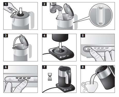 Sử dụng ấm nước theo hình ảnh dưới đây: