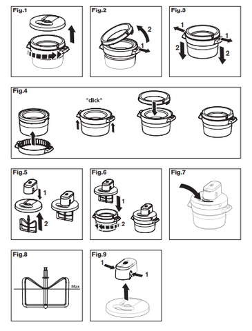 b) Gắn bộ phận mô-tơ vào nắp và lắp lưỡi cắt vào bộ phận mô-tơ (Hình 5). Đảm bảo khối động cơ được cố định tốt.