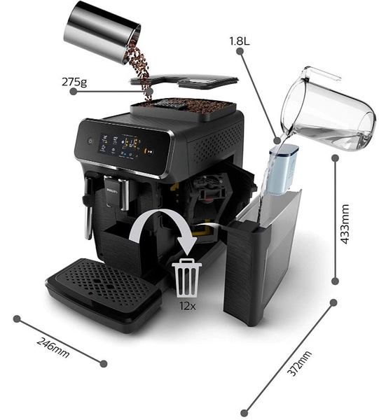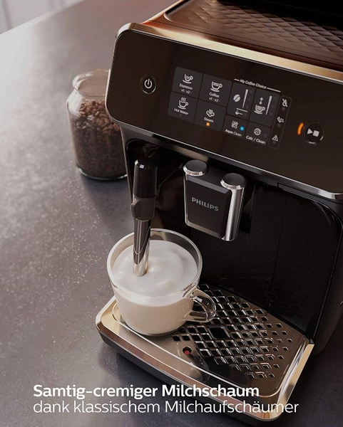 - Với máy pha cà phê Philips EP2221/40 với hệ thống sữa LatteGo, bạn có thể thưởng thức ba đặc sản cà phê thơm (espresso, cà phê, cappuccino) - dễ dàng hơn bao giờ hết.