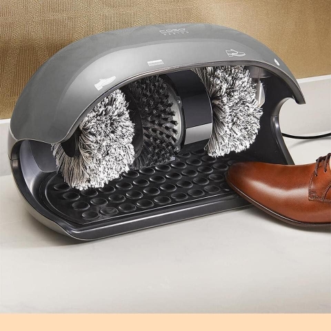 Máy tự động đánh giày bằng cơ chế bật tắt hồng ngoại tích hợp ,chỉ cần đưa chân vào trong máy
