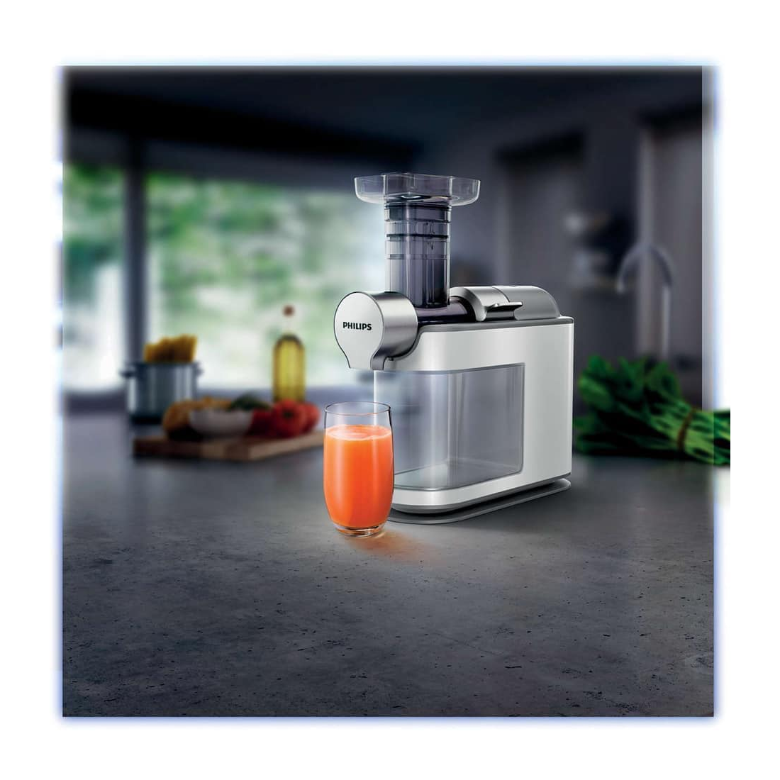 Máy ép chậm Phillip HR1945/80 (trắng) sản phẩm máy ép chậm đươc đánh giá tốt nhất tại thị trường Châu Âu